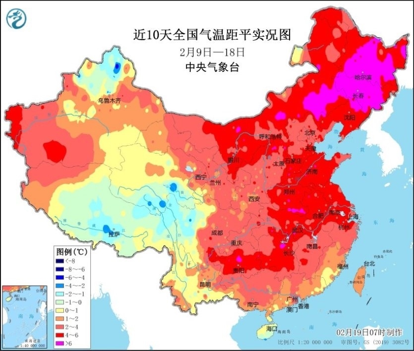央視網消息:2月19日晨,中央氣象臺繼續(xù)發(fā)布寒潮橙色預警。預計,2月19日08時至2月21日08時,內蒙古東南部、東北地區(qū)、華北大部、黃淮、江淮、江漢、江南北部等地部分地區(qū)將先后降溫8~10℃,其中,東北地區(qū)中東部、華北南部、黃淮大部、江淮中西部、江漢、湖南北部等地降溫12℃~14℃,東北地區(qū)東部等地部分地區(qū)降溫可達18℃以上。