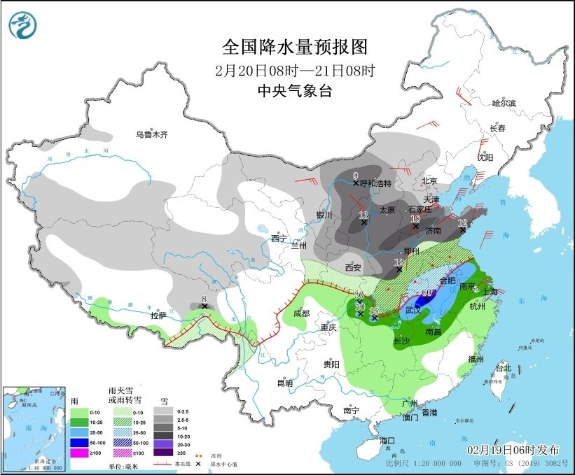 2月19日至22日,中東部地區(qū)將再現大范圍雨雪冰凍天氣。華北西部和南部、黃淮等地有大到暴雪,局地大暴雪;南方雨勢強,并伴有雷暴、短時強降水和冰雹等強對流天氣。河南、安徽、湖北、湖南、貴州等地的部分地區(qū)將先后出現凍雨或冰粒。