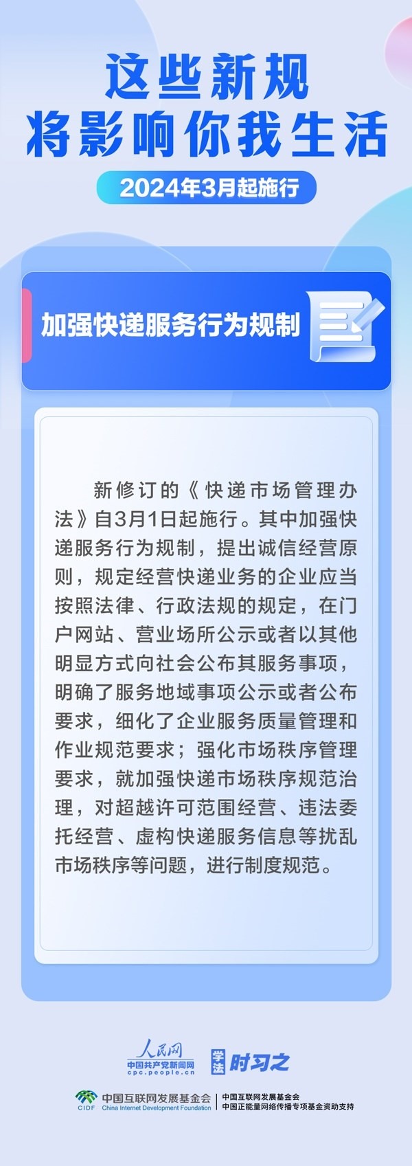 加大對行賄行為懲治力度;規(guī)范檔案收集管理;加強快遞服務行為規(guī)制……3月起,這些新規(guī)施行,將影響你我生活。
