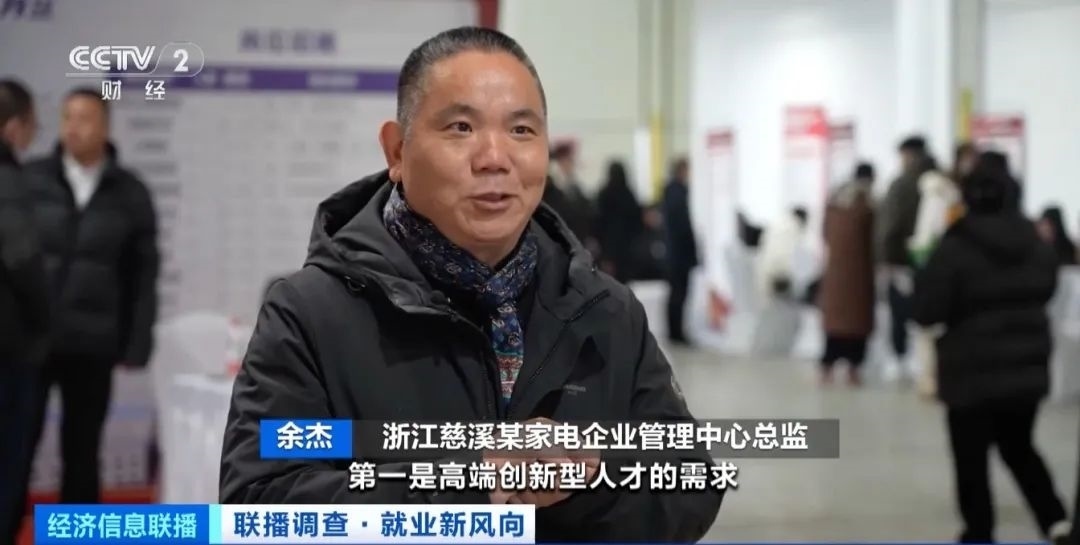 浙江慈溪某家電企業(yè)管理中心總監(jiān) 余杰:第一是高端創(chuàng)新型人才的需求,第二是一線產業(yè)工人的需求。接下來幾年,我們企業(yè)對智能化、數字化的人才有大量需求,市場很欠缺。
