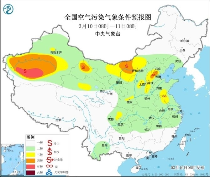 另外,受大風(fēng)天氣影響,10日,內(nèi)蒙古中西部、寧夏北部、甘肅河西、青海北部等地的部分地區(qū)有揚(yáng)沙或浮塵。請公眾戶外活動做好防風(fēng)防沙措施,室內(nèi)關(guān)好門窗。