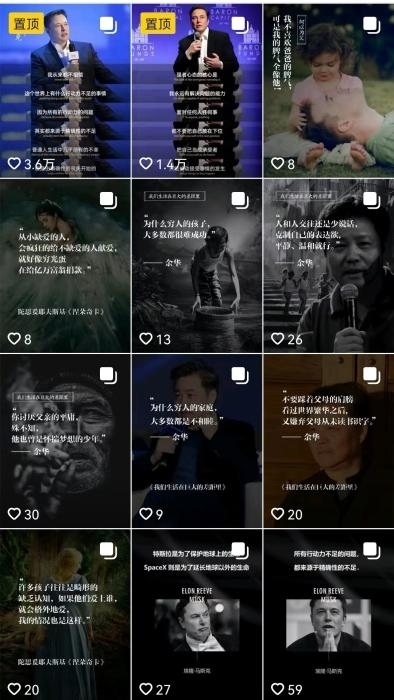 “滿屏皆是馬斯克”之外,在一些雞湯類賬號里,作家余華、知名投資人沃倫·巴菲特等也是“高產”創(chuàng)作者。