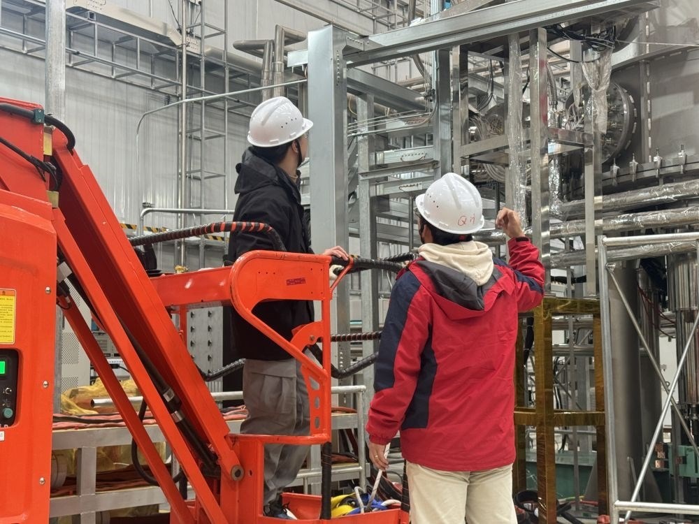 2024年3月12日,工作人員對(duì)全高溫超導(dǎo)托卡馬克裝置“洪荒70”進(jìn)行調(diào)試。新華社記者 周琳 攝