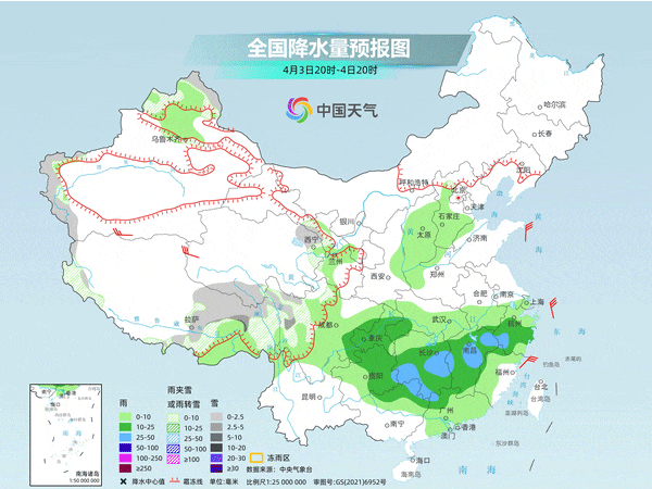 4-6日在冷空氣的推動下,雨帶會南落,華南中北部、江南及貴州東部等地有中到大雨,局地有暴雨或大暴雨。