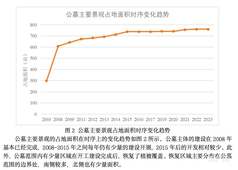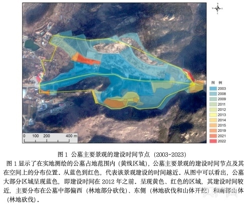 位于青島城陽(yáng)區(qū)夏莊街道華陰社區(qū)太平山的太平陵公墓,地處嶗山山脈西麓,在嶗山風(fēng)景區(qū)保護(hù)范圍內(nèi)。該公墓是1996年經(jīng)民政部門(mén)審批的經(jīng)營(yíng)性公墓,合法審批面積為87.53畝。遙感衛(wèi)星影像分析顯示,該公墓大面積非法擴(kuò)建已持續(xù)多年,存在毀林挖山建墓地的情況。