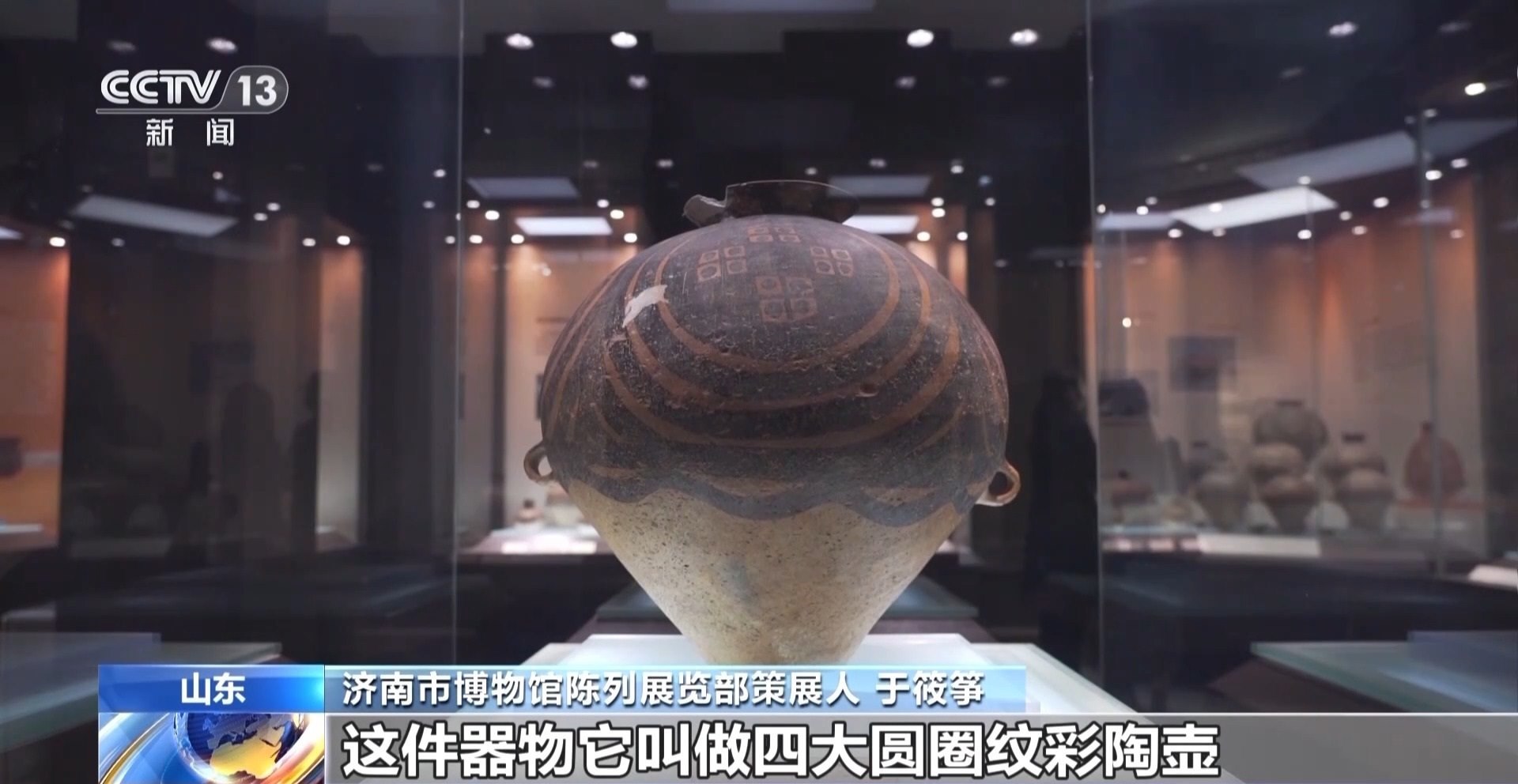 濟(jì)南市博物館陳列展覽部策展人 于筱箏:例如我們此次展覽中展出的兩件非常重要的漩渦紋彩陶壺和漩渦紋彩陶盆,其上均是以漩渦紋為主要紋飾,而這種紋飾就是當(dāng)時馬家窯先民對于黃河奔騰河水的一種非常概括,以及極富想象力的描繪,它們也是新石器時代晚期黃河文明形成與發(fā)展的一種重要見證。