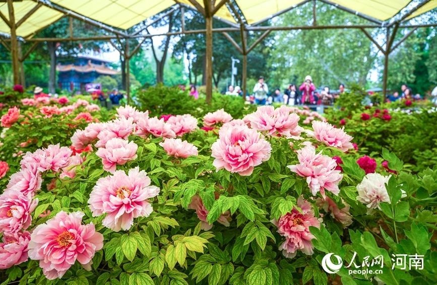 眼下,正是洛陽牡丹盛開的季節(jié)。在王城公園內(nèi),目前共有550個(gè)品種牡丹開放,飛燕紅裝、菱花湛露、金絲貫頂、勝葛巾、姚黃、首案紅等品種牡丹,綻放出傾城之姿,吸引了海內(nèi)外游客前來賞花游園。