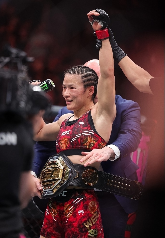 北京時(shí)間14日,UFC(終極格斗冠軍賽)史上首次“中國德比”冠軍戰(zhàn)在美國拉斯維加斯上演。兩位選手?jǐn)y手奉獻(xiàn)了一場精彩的比賽,經(jīng)過五回合鏖戰(zhàn),張偉麗戰(zhàn)勝閆曉楠,成功衛(wèi)冕女子草量級金腰帶。