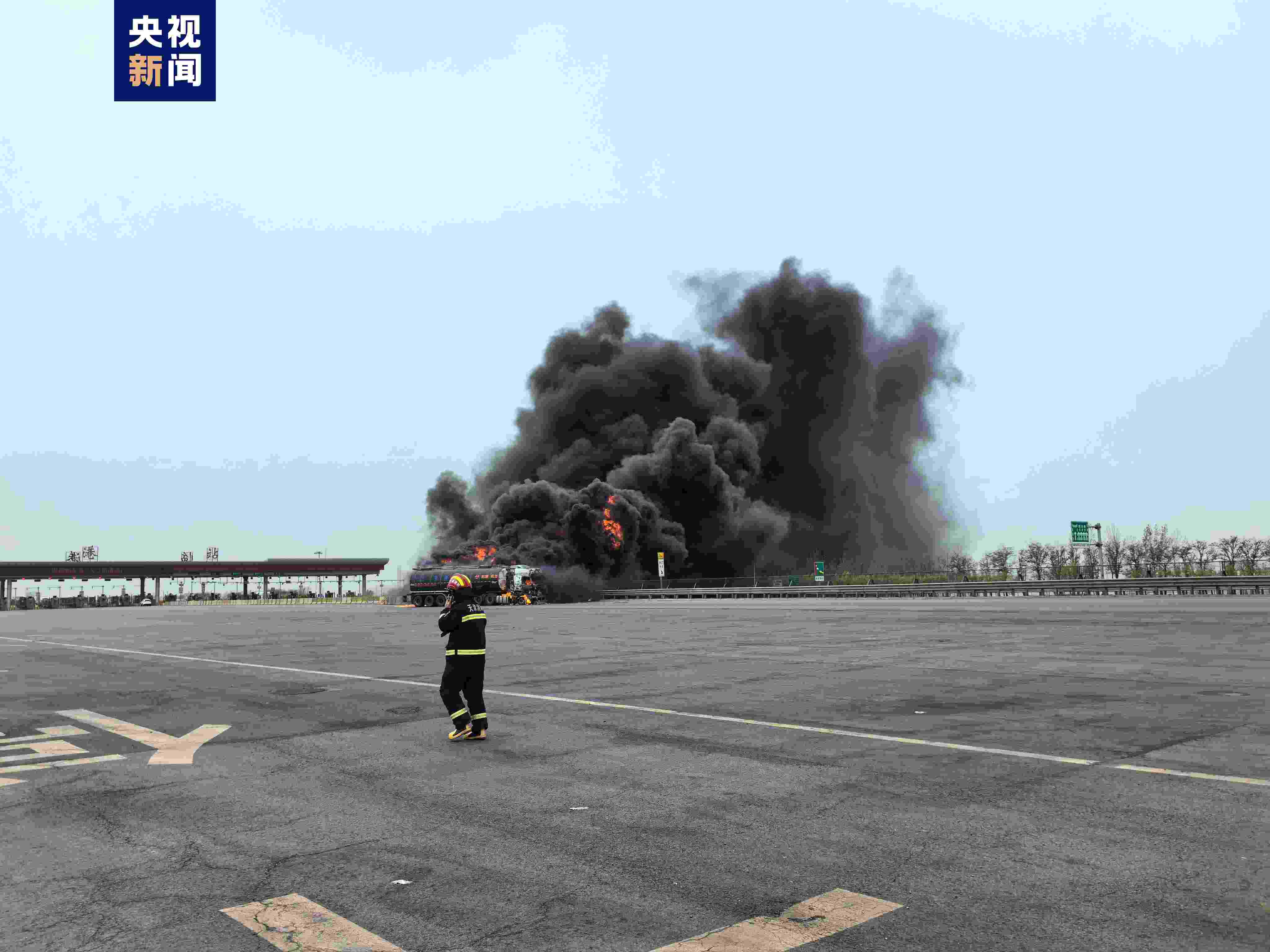 今天(19日)上午,天津市濱海新區(qū)秦濱高速臨港收費(fèi)站出口有兩輛罐車發(fā)生交通事故后起火。經(jīng)偵察,現(xiàn)場(chǎng)為一輛載有潤(rùn)滑油的罐車與一輛載有柴油的罐車相撞,造成兩輛罐車起火。