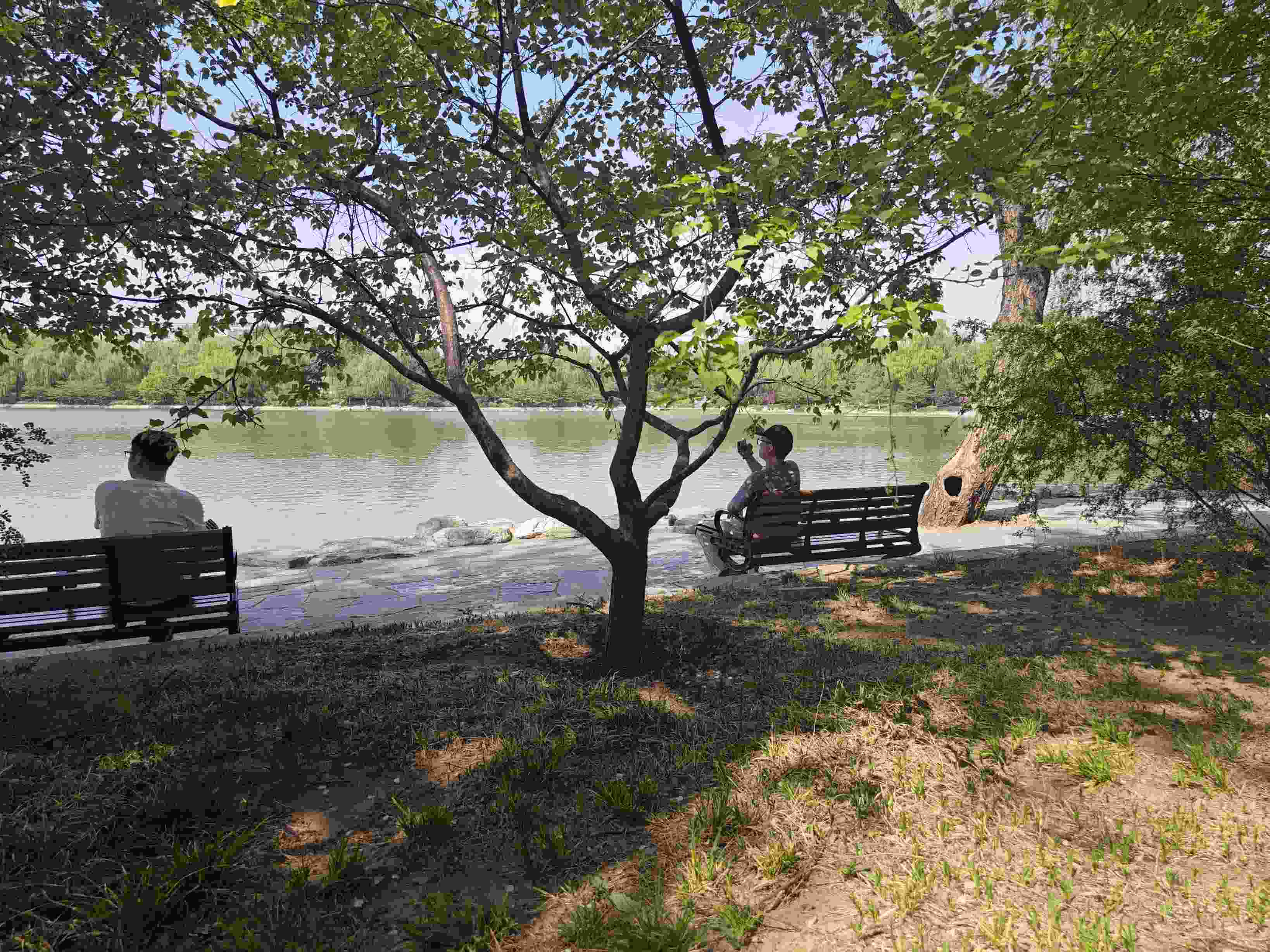 坐在湖邊長(zhǎng)椅上的王先生,正靜靜地享受著屬于他的獨(dú)處時(shí)光。“辦公室里開(kāi)了一上午會(huì),中午短暫地在公園中坐上一二十分鐘,哪怕只是發(fā)發(fā)呆,都能感受到輕松快樂(lè),這是一天忙碌工作中最珍貴的放松時(shí)光了。”