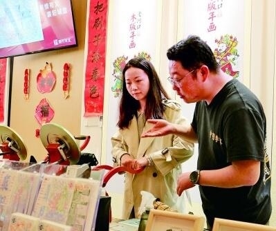 游客在襄陽古城管家巷體驗老河口木版年畫文創(chuàng)產品制作。本報記者 郭冠東攝