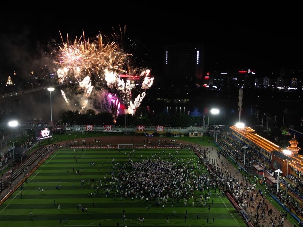 從全明星比拼,到中場的樂隊表演,再到終場的小型煙花秀,當晚的慶?;顒芋@喜連連?!啊宄恢痹诔掷m(xù)打造文體‘嘉年華’,不斷豐富賽事內(nèi)容,力爭給球迷和游客帶來全新的體驗和持續(xù)的歡樂?!辟F州“村超”組委會成員、榕江縣文化館館長李莎介紹,“村超”新賽季開啟決賽階段的比賽以來,除了延續(xù)上賽季的拉拉隊巡演、美食投喂、中場表演等精彩內(nèi)容外,還推出了“全民K歌”和“萬人蹦迪”等活動,體驗感和歡樂度都得到了提升。