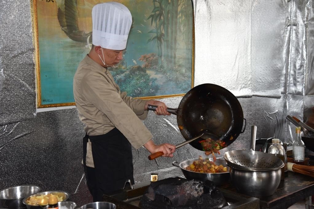 李湲湲正在制作炒雞(2023年4月25日攝)。新華社記者 李凡 攝