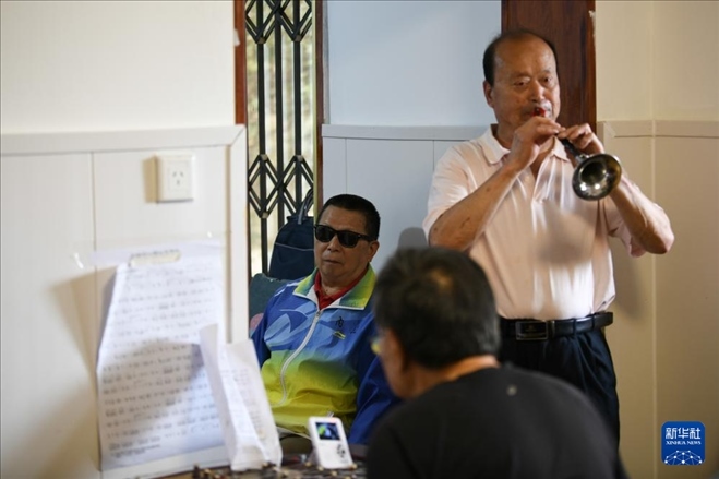 這是5月6日拍攝的“自強(qiáng)不息藝術(shù)團(tuán)盲人樂隊(duì)”排練現(xiàn)場。 新華社記者 胥冰潔 攝