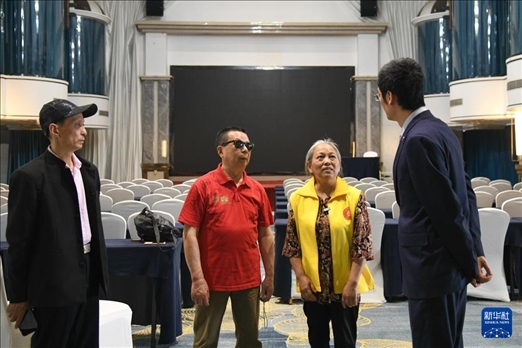 5月13日,在出發(fā)前往周年慶前,張世維在家中聯(lián)系現(xiàn)場細(xì)節(jié)。新華社記者 胥冰潔 攝