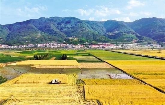 5月16日,湖北省襄陽(yáng)市保康縣馬橋鎮(zhèn)中坪村。小滿將至,當(dāng)?shù)匦←滉懤m(xù)成熟,進(jìn)入收獲季。楊 韜攝(中經(jīng)視覺)