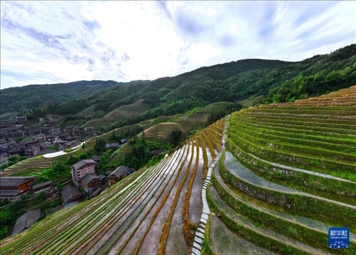 初夏時(shí)節(jié),廣西龍勝各族自治縣龍脊梯田景區(qū)內(nèi)2000多畝梯田生機(jī)盎然。