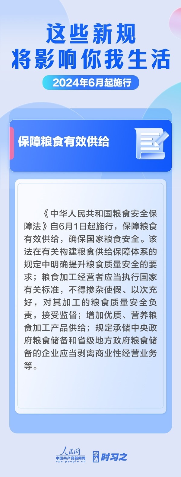 保障糧食有效供給;確立生態(tài)保護補償基本制度規(guī)則;規(guī)范保障海警機構(gòu)依法履職……6月起,這些新規(guī)施行,將影響你我生活。
