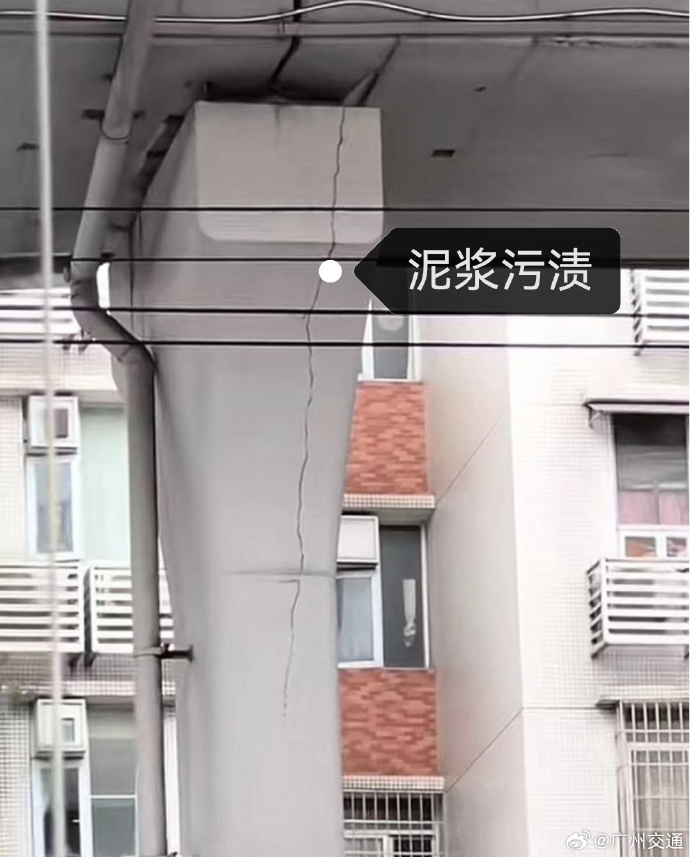 廣州市道路事務(wù)中心現(xiàn)場(chǎng)核實(shí),照片中的“裂縫”為泥漿污漬,現(xiàn)已完成污漬鏟除和涂裝翻新。