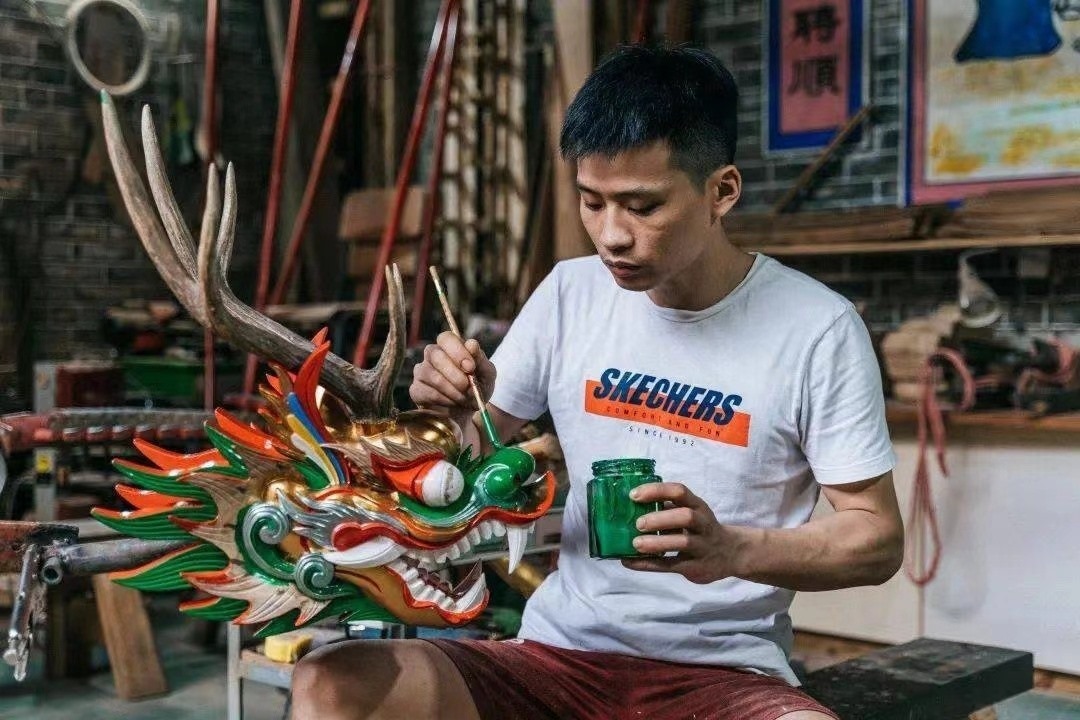 那兩年,張偉潮身邊做龍頭的老匠人們或退休,或轉(zhuǎn)行,是最愁無人接班的時(shí)候。在沒人支持的落寞下,張偉潮迎頭撞進(jìn)了這個(gè)行當(dāng)。那是2010年,很快到來的,是龍舟的流行。