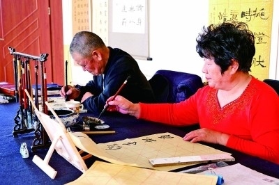 市民在社區(qū)文化中心練習(xí)書法。光明日報(bào)記者 郭俊鋒攝