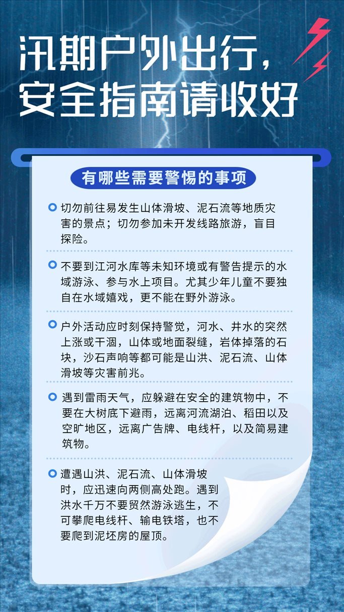 當(dāng)前正值暑假旅游旺季,也是汛期災(zāi)害事故易發(fā)多發(fā)時期。外出游玩時需要做好哪些安全防范工作?出游時又有哪些需要警惕的事項(xiàng)?一起來了解。