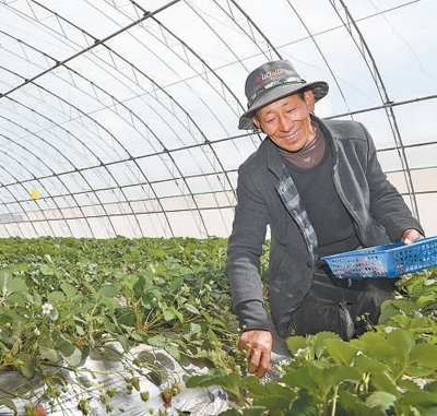 “以前不知道草莓是什么,沒見過也沒吃過?,F(xiàn)在一天到晚圍著它轉(zhuǎn),日子像草莓紅又甜?!逼窄偟哪橗嫴紳M笑容,沒想到自己年過半百還學(xué)會(huì)了種植草莓。