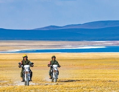 扎西羅布(右)和同事在巡護途中休息。以上圖片均為本報記者徐馭堯攝