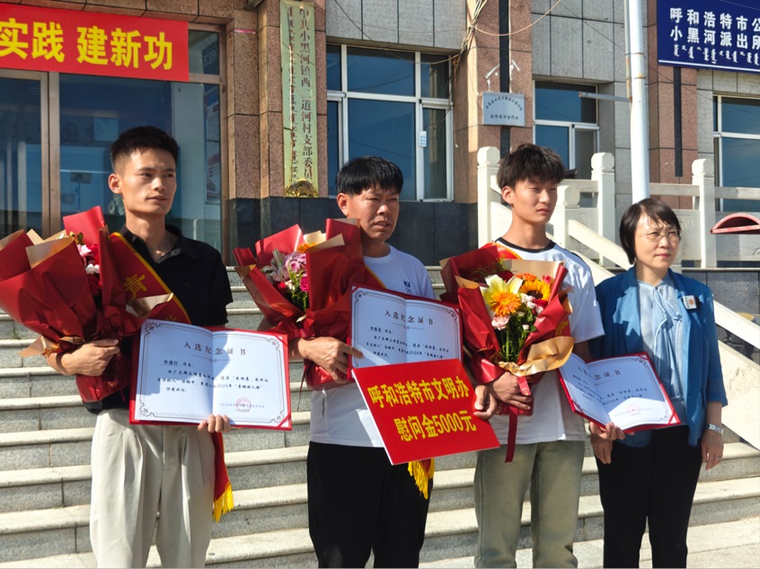 8月13日,張東霞來到玉泉區(qū)小黑河鎮(zhèn)西二道河村委會,慰問見義勇為的李春亞、李健壯、秦志翔3人,為他們送上鮮花、佩戴“青城好人”綬帶、頒發(fā)榮譽證書和“青城好人”獎章,授予“青城好人”榮譽稱號,并給予5000元慰問金,對他們在危難時刻勇救他人的行為給予肯定和贊譽。