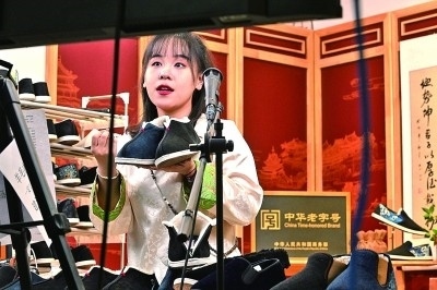 “大柵欄的游客多,每天約4000人來店光顧,其中有中老年,也有年輕人,還有寶媽帶著‘小不點(diǎn)兒’來買鞋的?!北本﹥?nèi)聯(lián)升副總經(jīng)理張景環(huán)說,據(jù)她觀察,不少年輕人如今也有了穿老布鞋的喜好,“我們?cè)诔啥继爬锸装l(fā)了一款跨界聯(lián)名的布鞋,樣子新穎,比較時(shí)尚,一經(jīng)推出便售罄了?!?/p>
