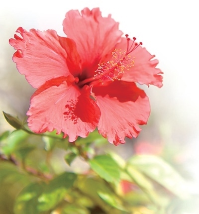 朱槿花大色艷,花蕊細(xì)長伸出于花瓣之外,花柱五裂,柱頭如粉球,花形俏麗喜慶,在我國兩廣地區(qū)被稱為“大紅花”,深受人們喜愛。在南寧,常見的朱槿花有十幾個品種,既有獨株高兩三米的小喬木、適合密植為樹籬的灌木,也有適合庭院、窗臺精巧布置的盆栽。