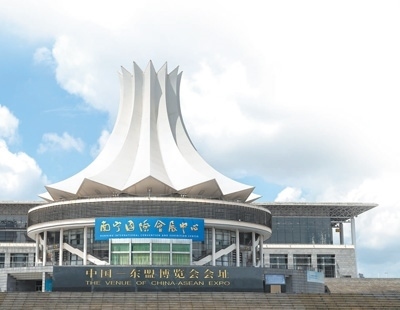 建筑造型以朱槿花為靈感,12片花瓣緊緊聚攏在一起,象征著世代居住在廣西的12個民族團結(jié)友好、和睦相處,共同建設(shè)山清水秀的美好家園,同時,也寓意著中國和東盟各國密切合作,共辦盛會,共襄盛舉,共謀發(fā)展。