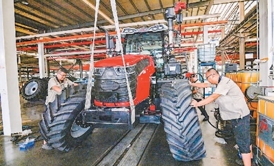 八月二十七日,山東青州經(jīng)濟(jì)開發(fā)區(qū)一家大馬力拖拉機(jī)制造企業(yè)內(nèi),工人正在車間進(jìn)行裝配作業(yè)。王繼林?jǐn)z(人民視覺(jué))