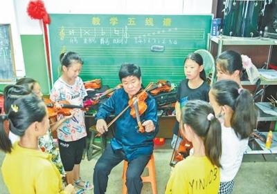 教學(xué)漸漸步入正軌后,張玉立還將支教的范圍擴(kuò)大到其他4個(gè)同樣偏僻的鄉(xiāng)鎮(zhèn)。山路崎嶇,往返山間,張玉立樂此不疲。“‘把琴聲送進(jìn)大山’不僅能夠豐富孩子們的生活,還可以幫助他們走出大山?!睆堄窳⒄f,經(jīng)過一段時(shí)間的教學(xué)以后,自己開始有意識(shí)地挑選對(duì)小提琴有興趣、有天賦的孩子,成立小提琴班,利用課外時(shí)間進(jìn)行專門訓(xùn)練。