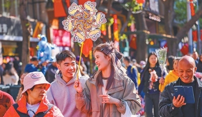 春節(jié)假期,游客在廣東省廣州市荔灣路花街游玩。