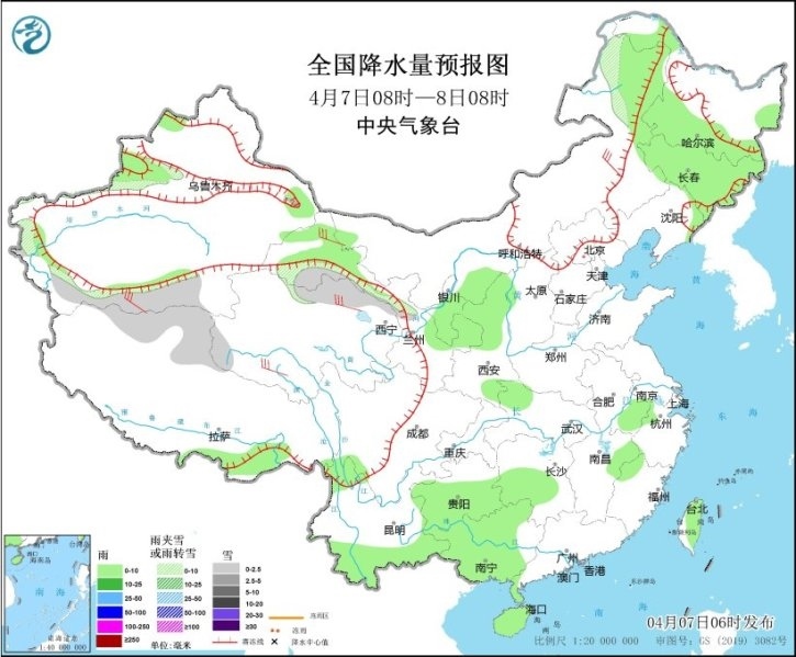 預(yù)計(jì)今明兩天,全國(guó)大部地區(qū)降水仍較弱,西南地區(qū)東部、江南、華南西部和北部、臺(tái)灣島等地部分地區(qū)有小到中雨,局地有大雨;今天(7日)新疆南疆西部、青海北部、內(nèi)蒙古東北部等地部分地區(qū)有小到中雪或雨夾雪。另外,8日夜間至9日,貴州東部、江南、華南北部等地部分地區(qū)有中到大雨,局地有暴雨,并伴有強(qiáng)對(duì)流天氣。