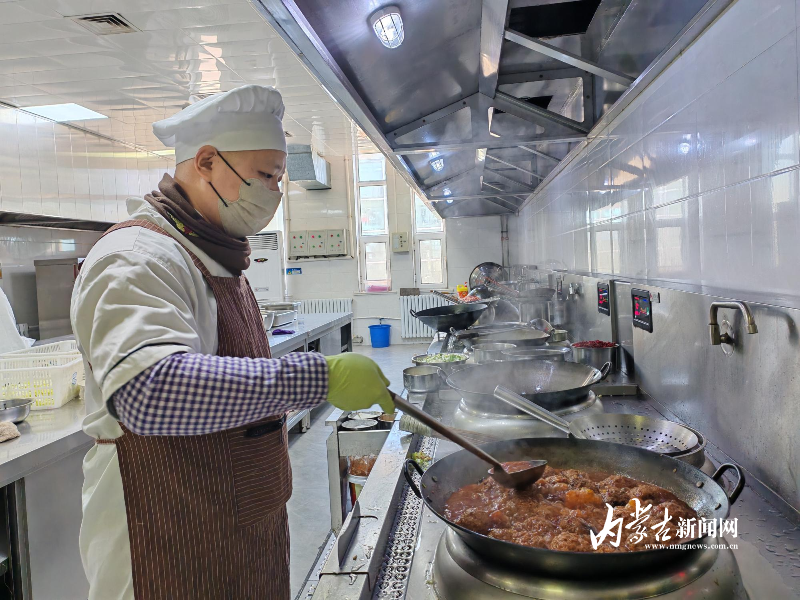 春節(jié)期間的桑根達(dá)來行車公寓后廚,廚師孫磊正在灶臺前忙碌著。面前一口碩大的鐵鍋內(nèi),醬色的四喜丸子在濃郁的湯汁里,散發(fā)著撲鼻的香氣。廚房升騰著陣陣煙火氣,蒸汽在玻璃窗上凝成水珠。灶臺上好幾口鐵鍋同時翻騰著——紅燒肉咕嘟冒泡,油燜大蝦亮紅誘人,燉牛肉飄來陣陣香氣,圓嘟嘟的餃子也即將下鍋。千家萬戶團(tuán)圓之時,這個草原深處的特殊驛站里,工作人員正用精心制作的特色美食,為堅守崗位的鐵路人打造出別具溫情的團(tuán)圓飯。