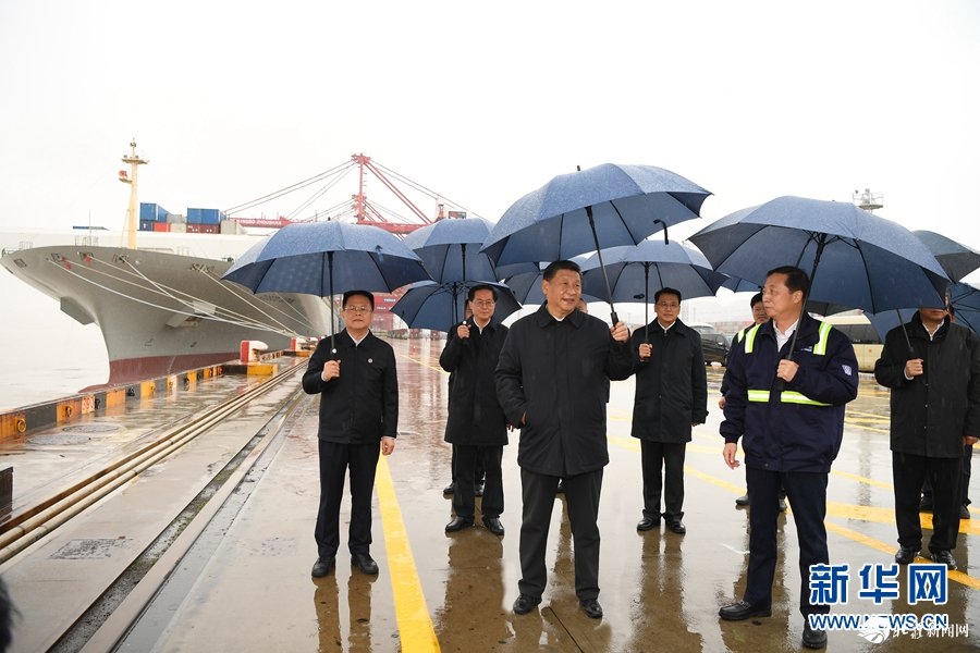 隨后,習近平乘車來到穿山港區(qū)2號集裝箱泊位,冒雨察看了碼頭現(xiàn)場集裝箱作業(yè)場景,了解港口作業(yè)情況。習近平強調(diào),港口是基礎(chǔ)性、樞紐性設(shè)施,是經(jīng)濟發(fā)展的重要支撐。寧波舟山港在共建“一帶一路”、長江經(jīng)濟帶發(fā)展、長三角一體化發(fā)展等國家戰(zhàn)略中具有重要地位,是“硬核”力量。要堅持一流標準,把港口建設(shè)好、管理好,努力打造世界一流強港,為國家發(fā)展作出更大貢獻。