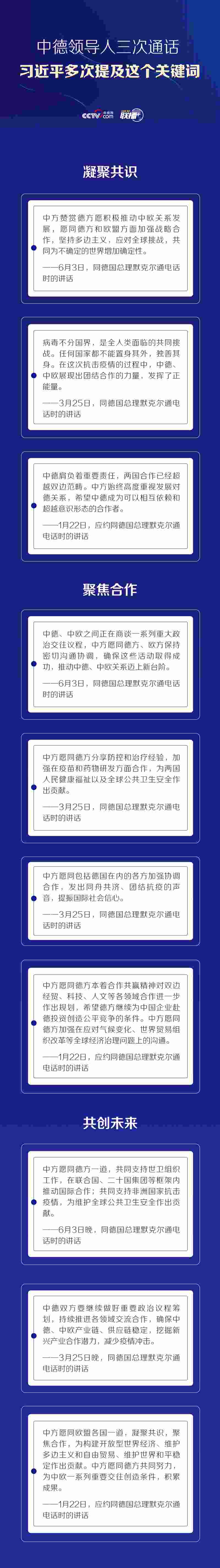 聯(lián)播+6月3日晚,習近平主席同德國總理默克爾通電話。這是自新冠肺炎疫情暴發(fā)以來,雙方第三次通話。習近平強調(diào),近日中德“快捷通道”正式啟動,這有利于幫助兩國有需求的企業(yè)加快復工復產(chǎn),維護國際產(chǎn)業(yè)鏈、供應鏈穩(wěn)定。