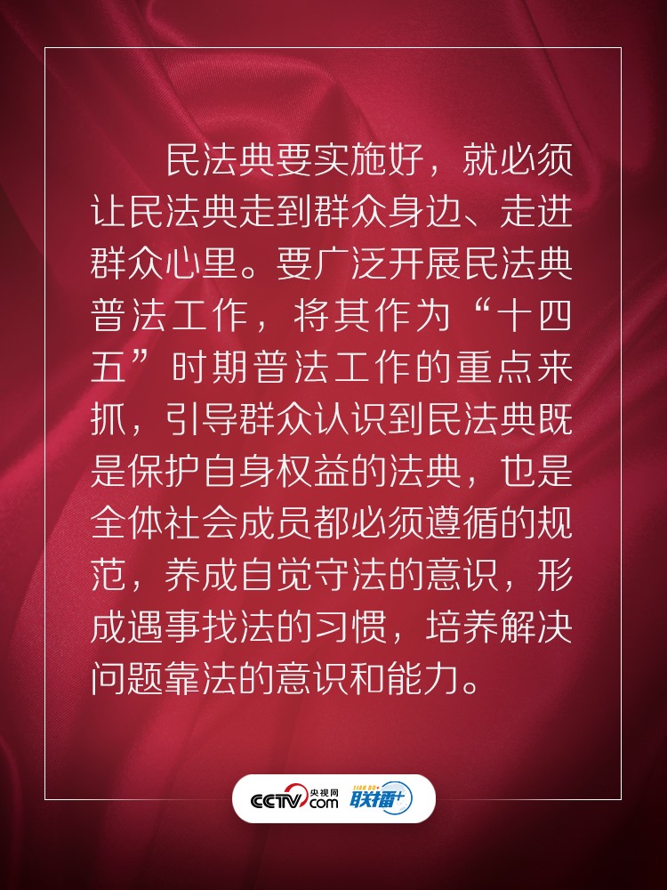 民法典回應了人民的期待,充滿了以人民為中心的底色。央視網(wǎng)《聯(lián)播+》特梳理習近平總書記相關(guān)話語,與您一起學習感悟。