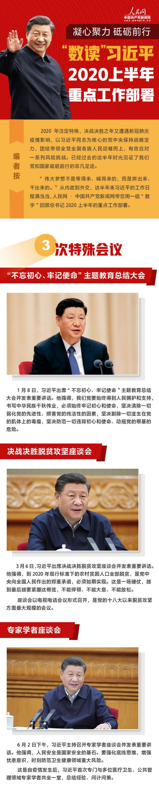 細數今年上半年,習近平夙夜在公,勤勉工作,不斷刷新“忙碌指數”:數十次出席重要會議部署各項工作,8次國內考察,調研足跡遍及7省區(qū)市,3次出席國際重要會議并發(fā)表講話,20余次致信、回信海內外人士,60次就疫情防控等話題與40余位外國政要和國際組織負責人通電話……人民網·中國共產黨新聞網推出系列圖解報道,帶您全方面回顧習近平的2020上半年。
