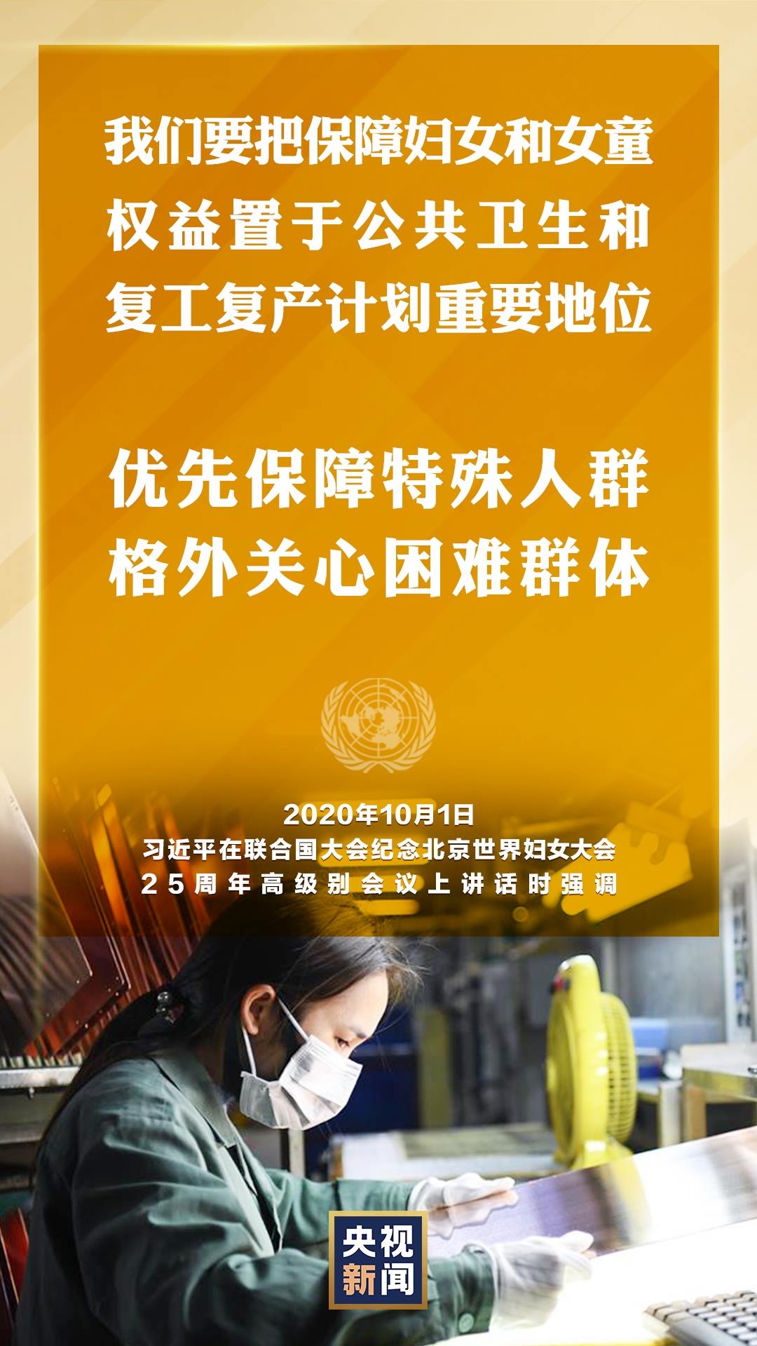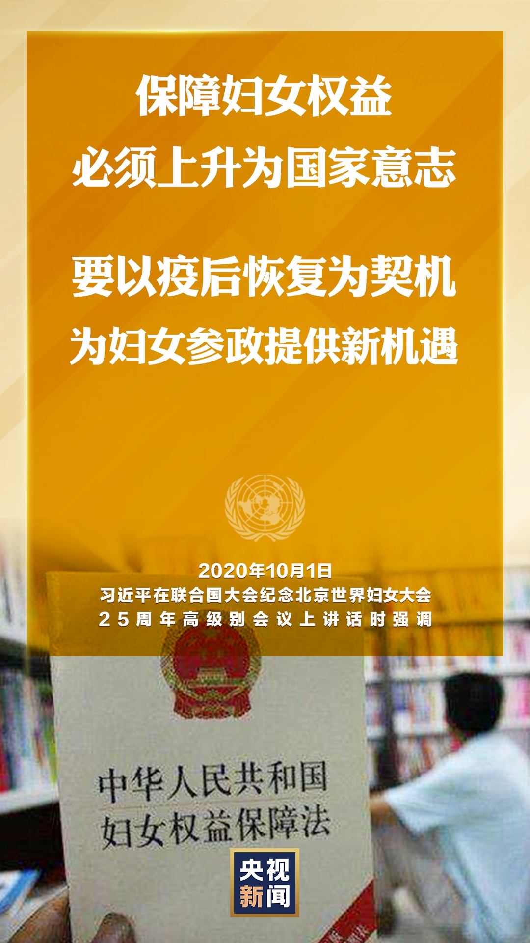 國家主席習近平10月1日在聯(lián)合國大會紀念北京世界婦女大會25周年高級別會議上通過視頻發(fā)表重要講話。就如何切實保護婦女權(quán)益,習近平提出中國主張。