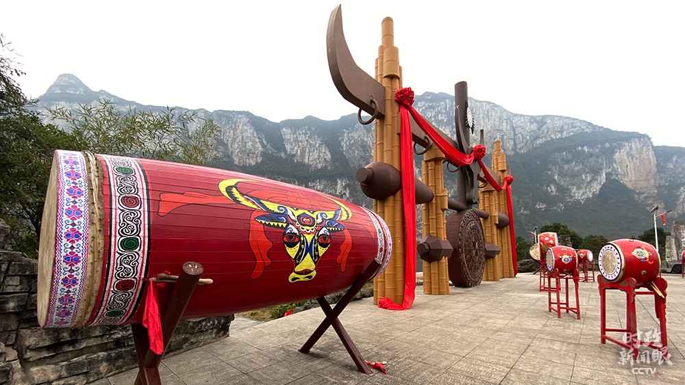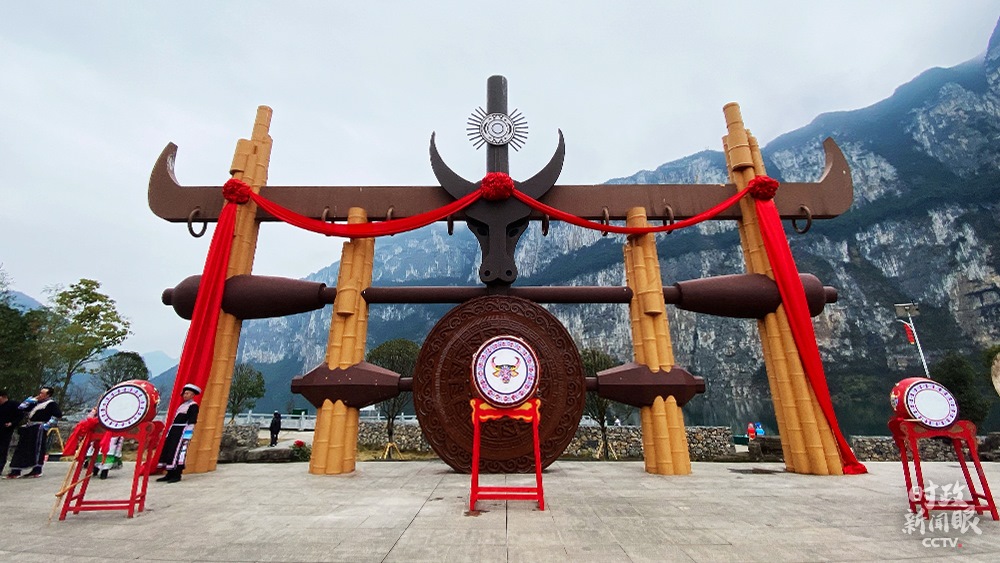 △化屋村文化廣場,牛角是苗族圖騰之一。(總臺(tái)央視記者張宇、李輝拍攝)