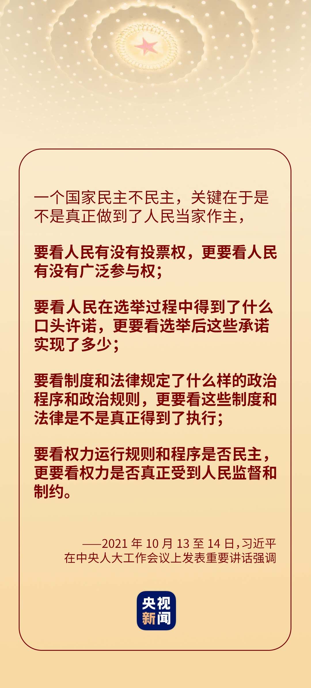 “黨的十八大以來,我們深化對(duì)民主政治發(fā)展規(guī)律的認(rèn)識(shí),提出全過程人民民主的重大理念。”在中央人大工作會(huì)議上,習(xí)近平全面闡釋了“全過程人民民主”的深刻內(nèi)涵——實(shí)現(xiàn)了過程民主和成果民主、程序民主和實(shí)質(zhì)民主、直接民主和間接民主、人民民主和國(guó)家意志相統(tǒng)一,是全鏈條、全方位、全覆蓋的民主,是最廣泛、最真實(shí)、最管用的社會(huì)主義民主。