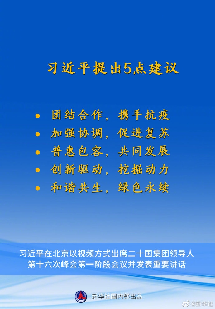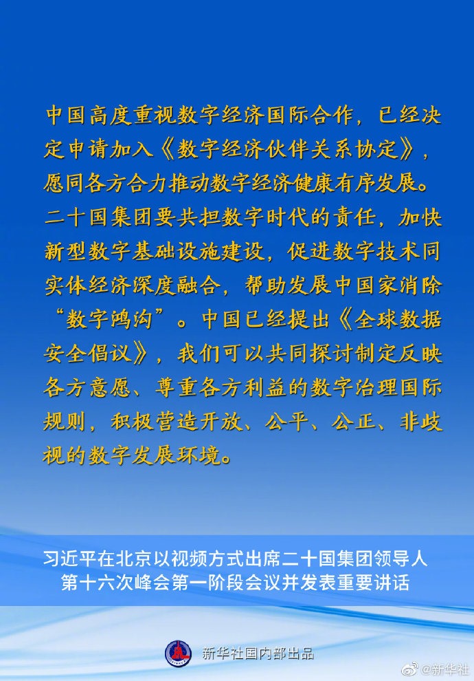 國家主席習(xí)近平10月30日在北京以視頻方式出席二十國集團(tuán)領(lǐng)導(dǎo)人第十六次峰會第一階段會議并發(fā)表重要講話。講話有哪些要點(diǎn),一起來看↓