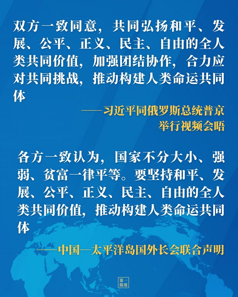 從同普京總統(tǒng)視頻會晤、同菲律賓總統(tǒng)杜特爾特通電話,到第七十屆聯(lián)合國大會一般性辯論、世界經濟論壇“達沃斯議程”對話會、中國共產黨與世界政黨領導人峰會等多邊場合,習近平主席多次闡述全人類共同價值的深刻內涵,凝聚中外共識。