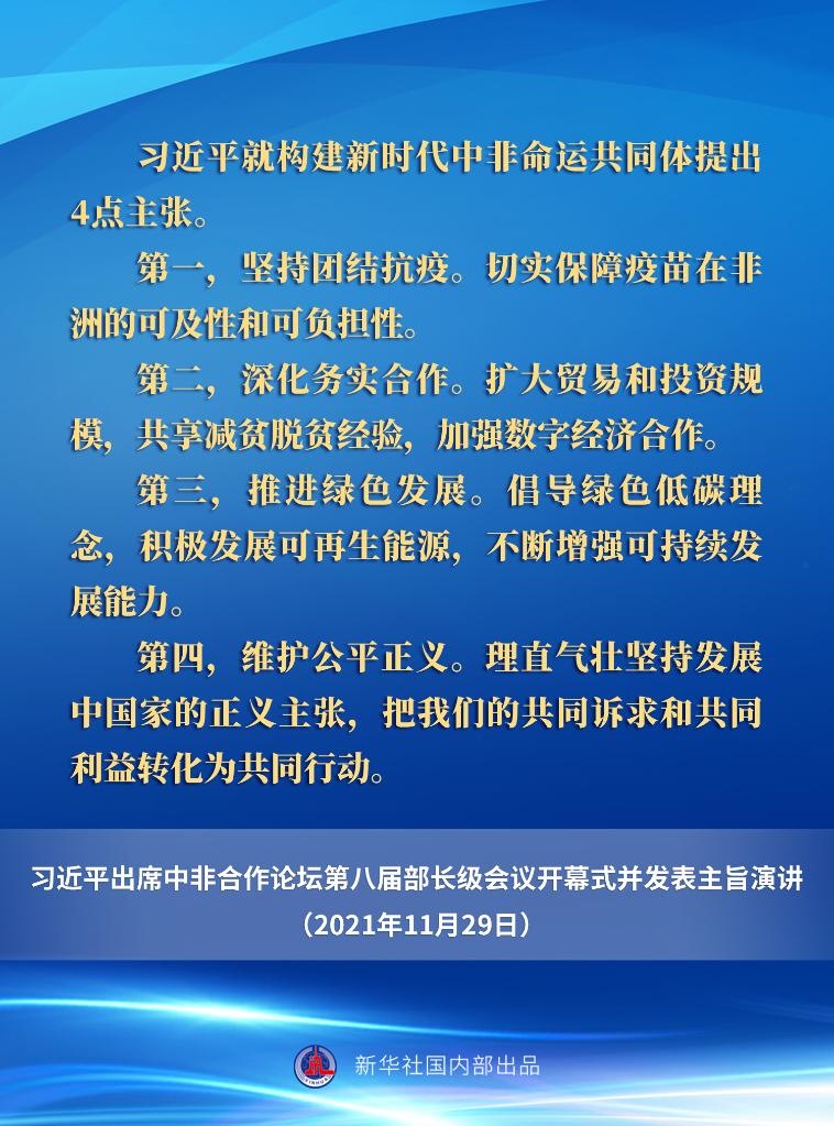 11月29日晚,國家主席習(xí)近平在北京以視頻方式出席中非合作論壇第八屆部長級會議開幕式并發(fā)表主旨演講。一起來看要點(diǎn)。