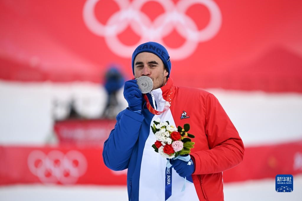 2月7日,高山滑雪男子滑降項(xiàng)目亞軍、法國選手約翰·克拉雷在獎(jiǎng)牌頒發(fā)儀式上。新華社記者 陳斌 攝