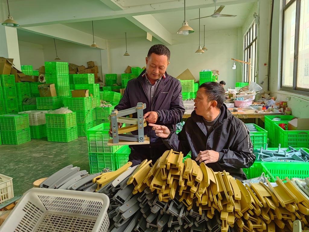在廣西柳州市融水苗族自治縣良寨鄉(xiāng)培洞村,紀(jì)檢監(jiān)察干部(右一、二、三)在檢查扶貧道路施工情況(2019年11月5日攝)。新華社記者 黃孝邦 攝