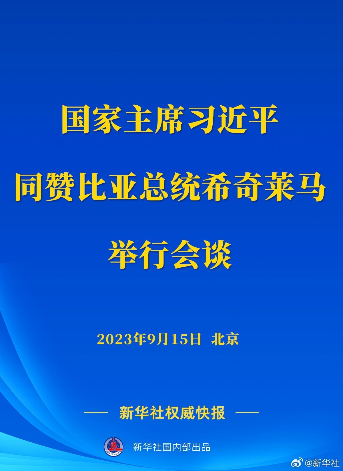 習近平同贊比亞總統(tǒng)希奇萊馬舉行會談 9月15日上午,國家主席習近平在人民大會堂同來華進行國......